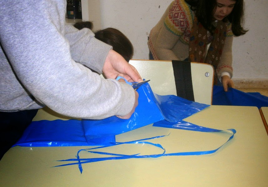 Parece que se vai logrando, entre todos! Foron os mesmos alumnos e alumnas os encargados de facer un traxe con mangas longas.Medir, recortar, colocar e insertar.